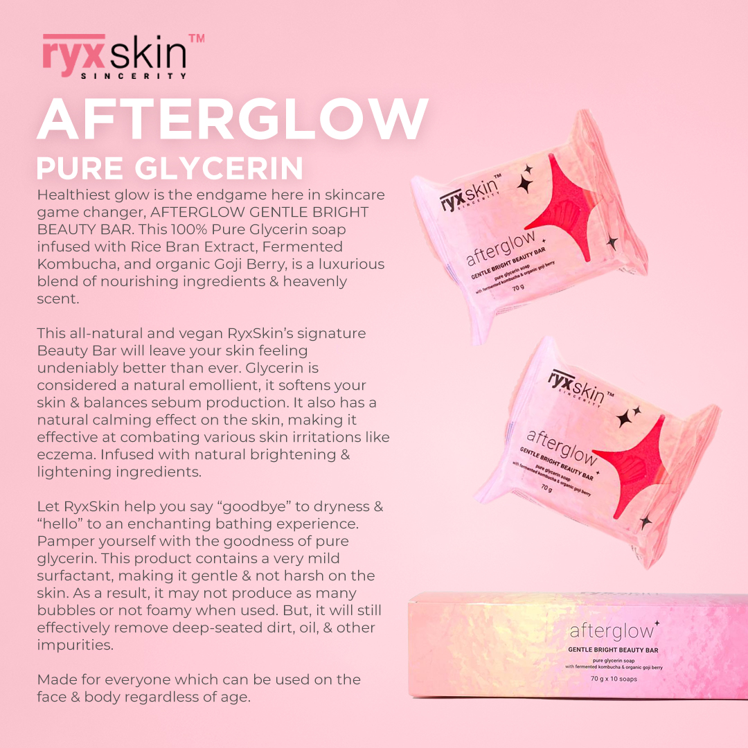 Introducing our newest game-changer: AFTERGLOW GENTLE BRIGHT BEAUTY BAR đź«§ 100% Pure Glycerin infused with Rice Bran Extract, Fermented Kombucha & Organic Goji Berry